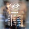 Business Hours Sign – Make your business stand out from the rest with this eye catching professional looking business name and hours of operation sign. Easy To Apply & Self Adhesive. Suitable For Windows, Walls & Many Other Surfaces. Typically produced within 1-2 business days.