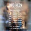 Business Hours Sign – Make your business stand out from the rest with this eye catching professional looking business name and hours of operation sign. Easy To Apply & Self Adhesive. Suitable For Windows, Walls & Many Other Surfaces. Typically produced within 1-2 business days.