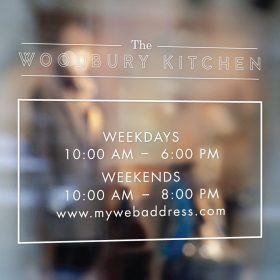Business Hours Sign – Make your business stand out from the rest with this eye catching professional looking business name and hours of operation sign. Easy To Apply & Self Adhesive. Suitable For Windows, Walls & Many Other Surfaces. Typically produced within 1-2 business days.