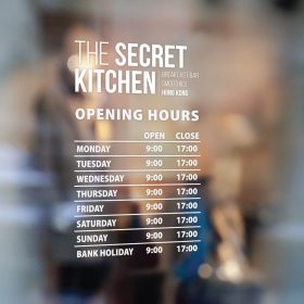 Business Hours Sign – Make your business stand out from the rest with this eye catching professional looking business name and hours of operation sign. Easy To Apply & Self Adhesive. Suitable For Windows, Walls & Many Other Surfaces. Typically produced within 1-2 business days.