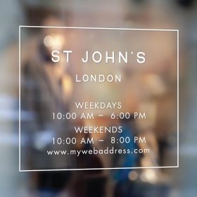 Business Hours Sign – Make your business stand out from the rest with this eye catching professional looking business name and hours of operation sign. Easy To Apply & Self Adhesive. Suitable For Windows, Walls & Many Other Surfaces. Typically produced within 1-2 business days.