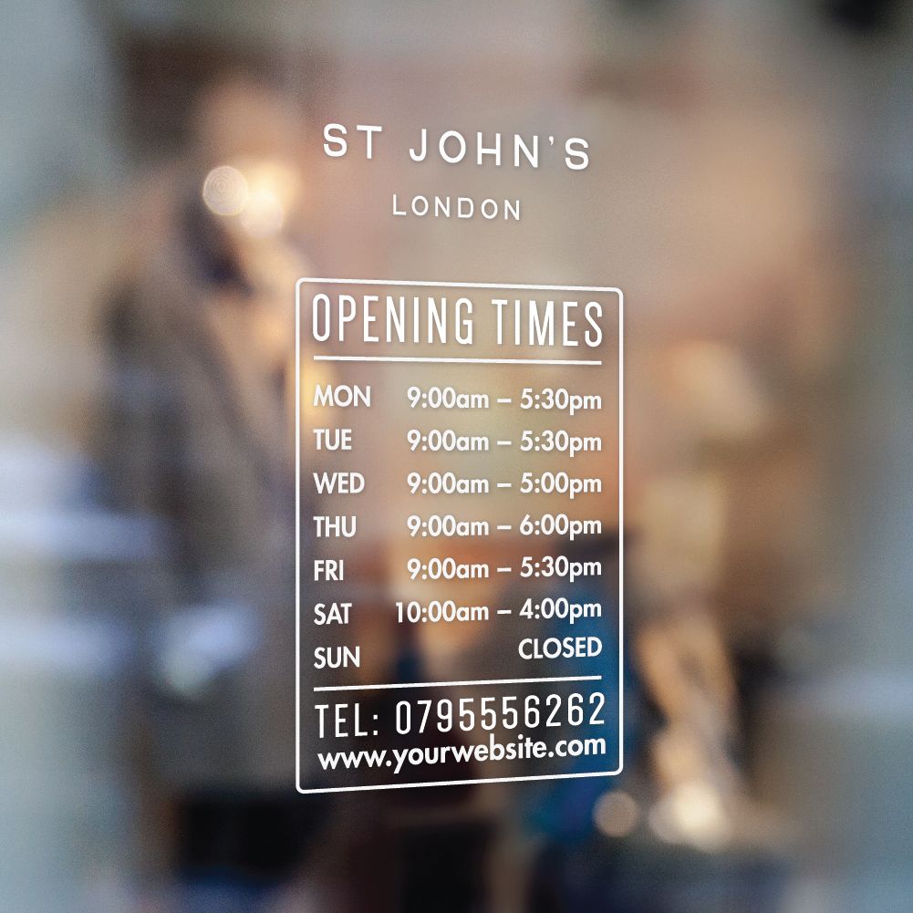 Business Hours Sign – Make your business stand out from the rest with this eye catching professional looking business name and hours of operation sign. Easy To Apply & Self Adhesive. Suitable For Windows, Walls & Many Other Surfaces. Typically produced within 1-2 business days.