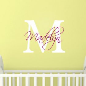 Beautifully scripted monogram baby name wall sticker, perfect for nursery wall or kids room. Personalise the baby name wall sticker by choosing your own name!