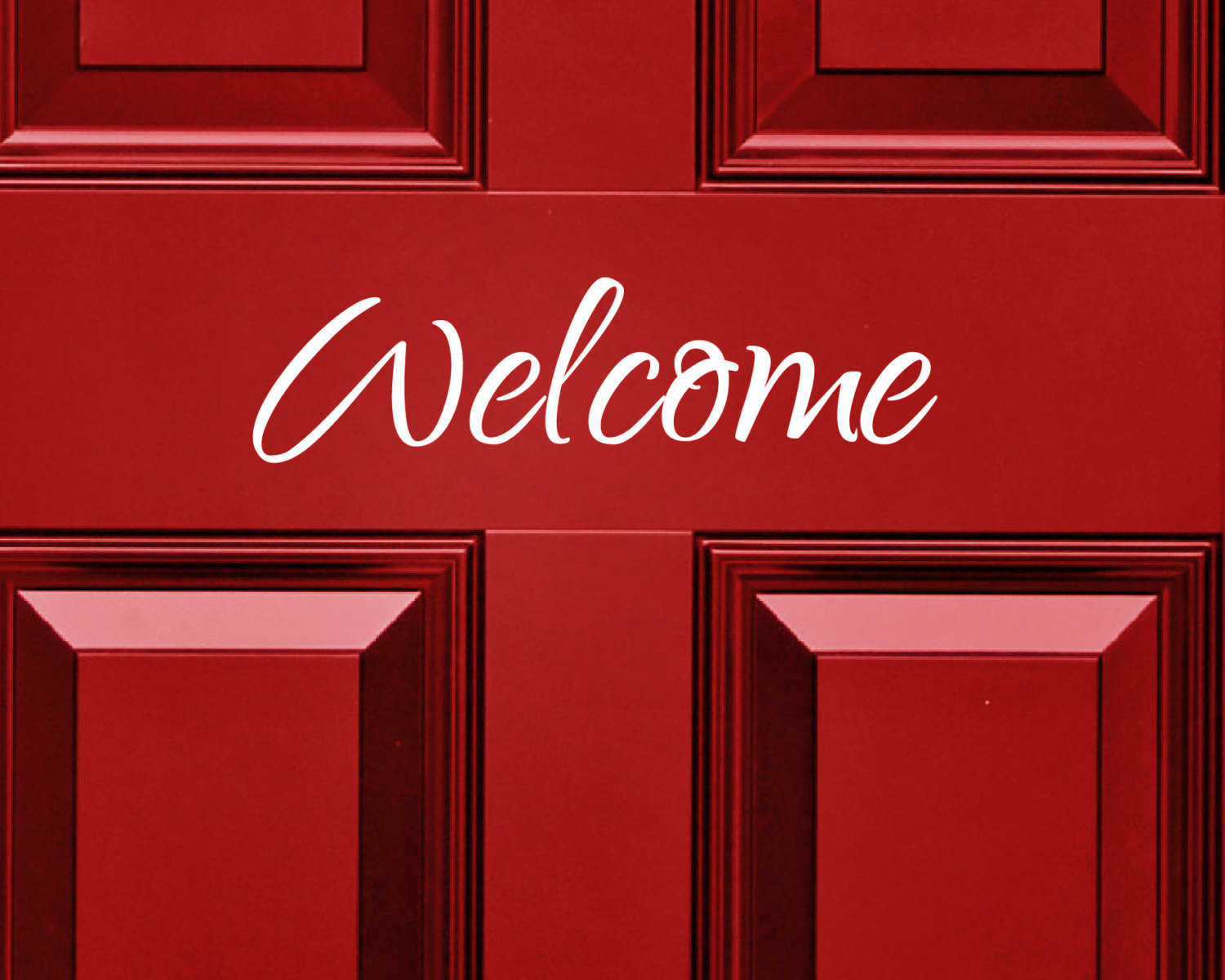 This is a 10″ wide welcome door sticker.