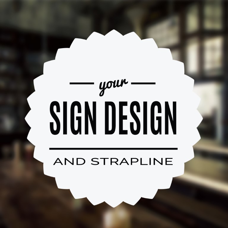 Enter your business name or any text that you would like displayed in the business name/main text box, along with any short text in the strapline/slogan box (i.e. what it is that you do or offer or any other short text that you require) and we will customise the design with those details. Note that the strapline is optional and not required – if this is left empty the design will be produced without the strapline area and any gaps.